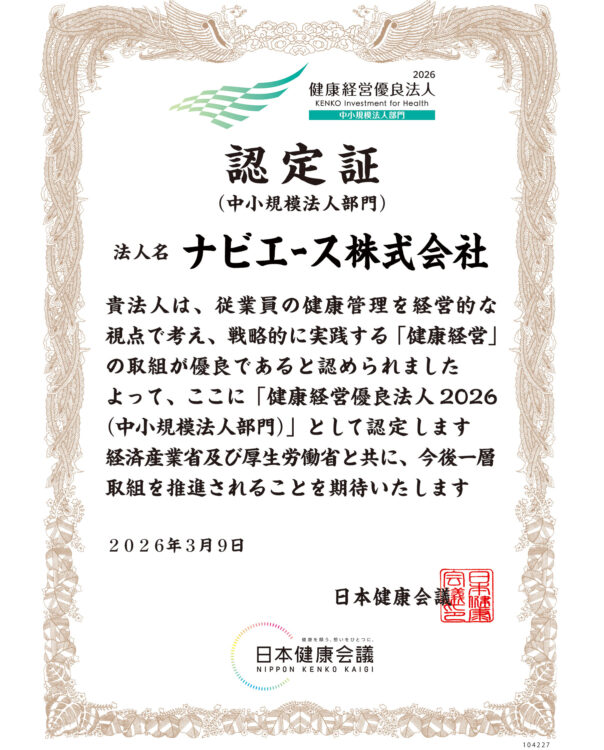 当社は2020年から継続して、経済産業省・日本健康会議が選ぶ「健康経営優良法人2026(中小規模法人)」に認定されました。